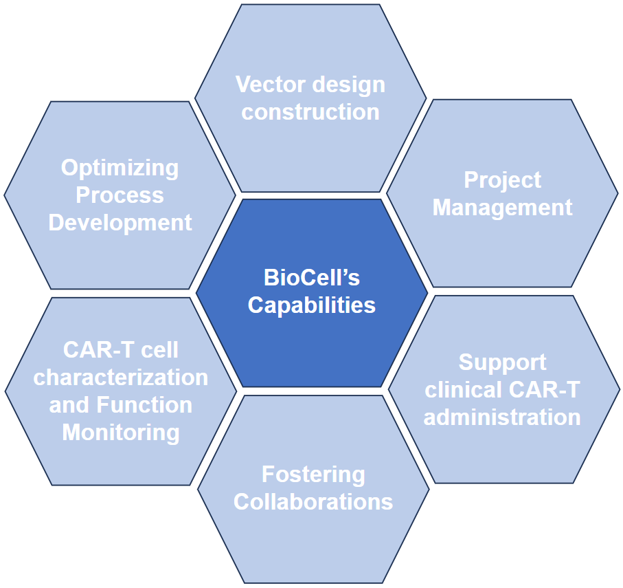 BioCell Innovations Pte Ltd is a Singapore-based company with the primary objective to bring cell and gene therapy to patients-in-need, offering them effective and personalized treatment options. Through extensive research and development, we have developed a range of cutting-edge technologies and platforms to drive this mission forward. One of our core technological advancements lies in our novel cell manufacture process, which aims to reduce potential adverse events associated with cytokine release syndrome (abbreviated as CRS). CRS is a common side effect of chimeric antigen receptor (CAR)-T cell therapy, leading to varying degrees of toxicity and can be fatal to patients. By coupling this innovative method with in-house developed CAR lentiviral vectors (LVs) such as humanized CD19 CAR LVs, we can minimize the occurrence and severity of CRS while maintaining robust anti-tumour efficacy of CAR-T cells. This will significantly improve patient safety and treatment outcomes. This process sets us apart and positions BioCell Innovations Pte Ltd as a frontrunner in the development of safe and effective cell-based therapies. Furthermore, we have on-going development of in-house CAR constructs for both autologous and allogenic T cells development, and this plan is also facilitated through collaboration with key partners in relevant industries and hospitals.